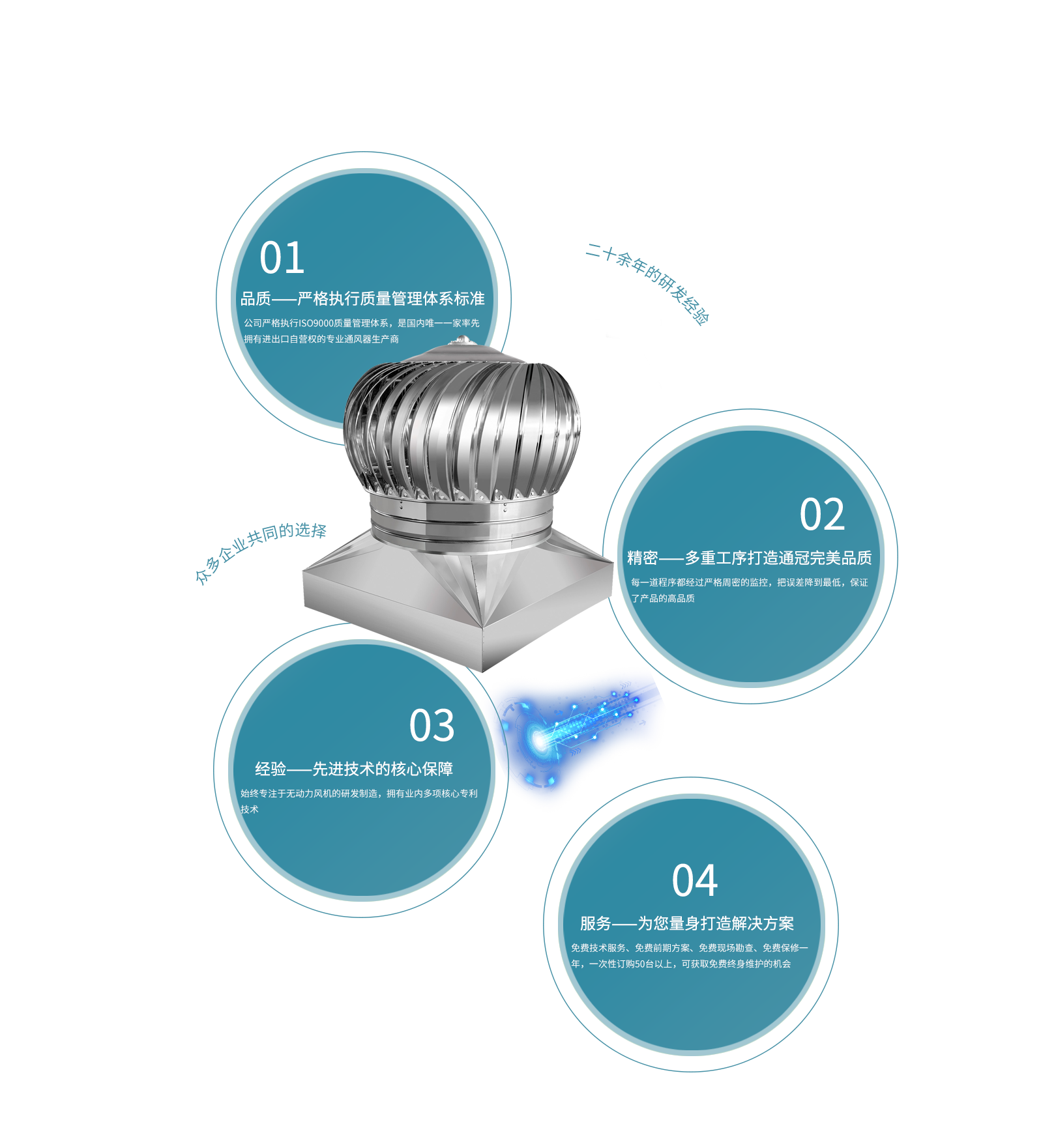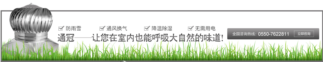 天長市通冠無動(dòng)力風(fēng)機(jī)有限公司,是集研發(fā)、生產(chǎn)、銷售于一體的,專業(yè)無動(dòng)力風(fēng)機(jī)生產(chǎn)廠家。公司坐落于205國道南京與揚(yáng)州之間,位于省級(jí)高新經(jīng)濟(jì)技術(shù)工業(yè)園,交通便利?!巴ü凇庇兄恢Ъ夹g(shù)精湛、服務(wù)非凡的隊(duì)伍。所有一線技術(shù)工人技術(shù)熟練、質(zhì)量意識(shí)強(qiáng)。公司嚴(yán)格執(zhí)行ISO9000質(zhì)量管理體系,一貫貫徹“以質(zhì)量為生命”、“以信譽(yù)為根本”、“以服務(wù)為基礎(chǔ)”的理念···[查看詳細(xì)]